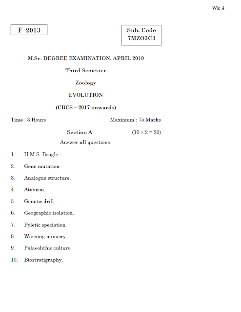 PDF Download: Click Here to Download Alagappa University M.Sc.Zoology EVOLUTION APRIL 2019 Question Paper