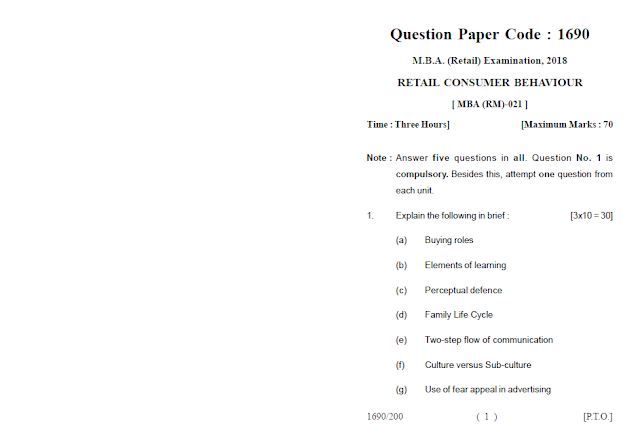 PDF Download: Click Here to Download Lucknow University MBA (Retail) RETAIL CONSUMER BEHAVIOUR [ MBA (RM)-021 ] - 2018 Question Paper