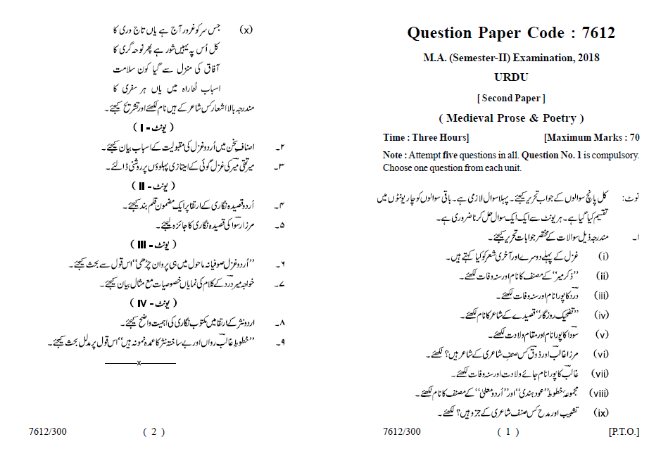 PDF Download: Click Here to Download Lucknow University M.A.(Semester-II) URDU [ Second Paper ] Medieval Prose & Poetry- 2018 Question Paper