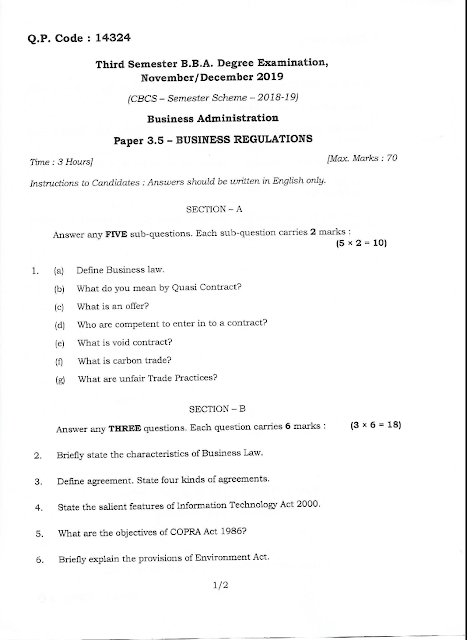 Bangalore University Old Question Paper / Previous Years Question Paper