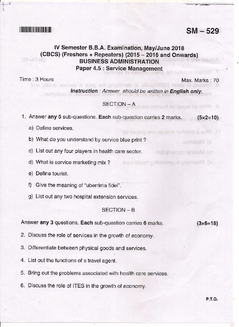 PDF Download: Click Here to Bangalore University B.B.A. Business Administration Paper 4.5 : Service Management May/June 2018 Question Paper