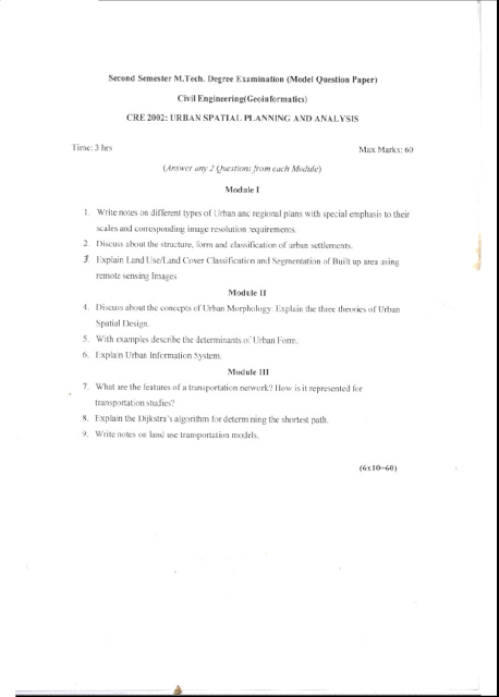 PDF Download: Click Here to download Kerala University M.Tech. Urban Spatial Planning And Analysis 2016 Question Paper in PDF