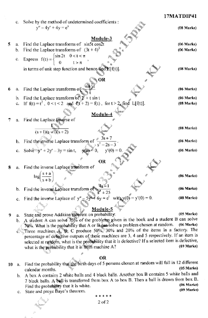 Visvesvaraya Technological University Old Question Paper / Previous Years Question Paper