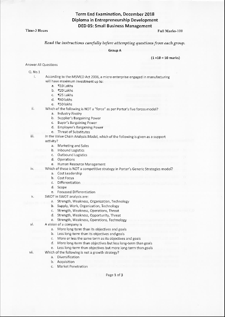 Attachment in PDF: Click Here to download OSPU DED Small Business Management dec 2018 Question Paper