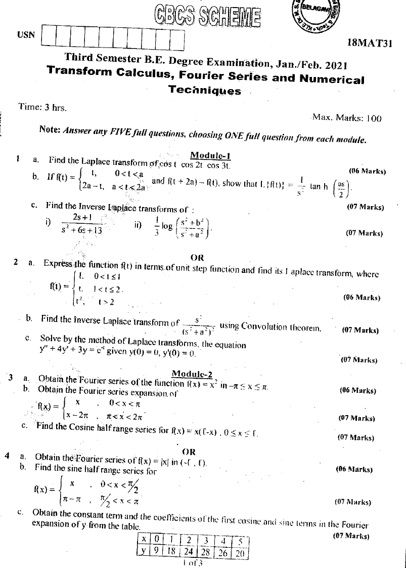 18MAT31 : Third Semester (CBCS)