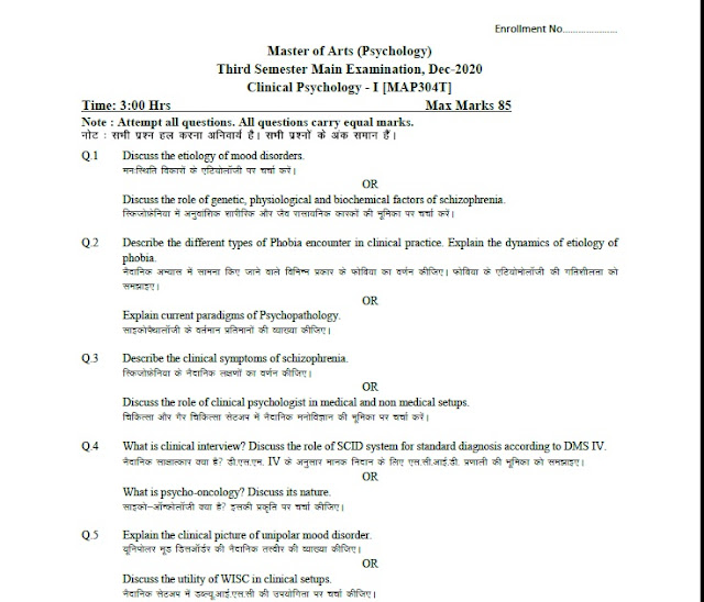 Dr.A.P.J.Abdul Kalam University MA III SEM (Psychology) Clinical Psychology - I [MAP304T] Dec - 2020 Question Papers