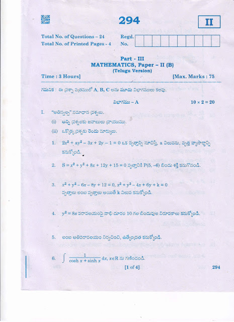 Attachment in PDF: Please Click Here: Board of Intermediate Education AP - General Part III 294 Mathematics Paper II (B) Telugu Version Sept - 2021 Question Paper