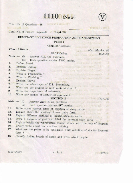 1110 (New) Ruminant Livestock Production and Management Paper I (English Version)