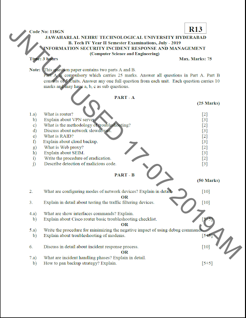 Attachment in PDF: Click Here to download JNTUH B.Tech information security incident response and management July - 2019 Question Paper