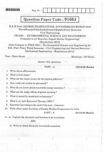 Attachments and PDF Link: Click Here to download Anna University GE 6351 - Environmental Science and Engineering For Civil Engineering November/December 2019