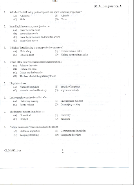 Attachment in PDF: Please Click Here: University of Kashmir ENTRANCE TEST 2014 FACULTY OF ARTS M.A. LINGUISTICS Question Paper