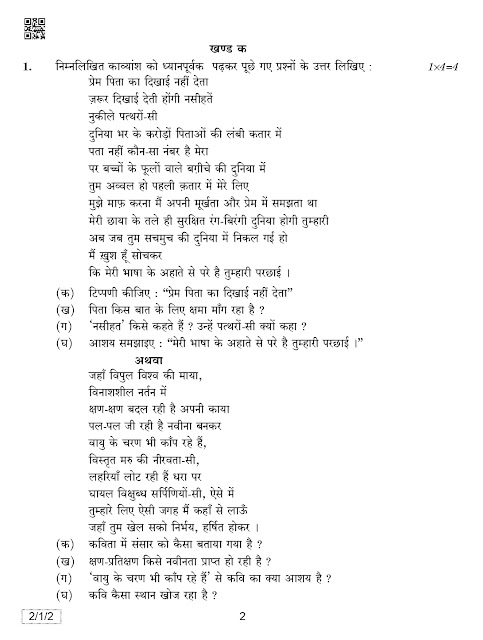 Attachment in PDF: Please Click Here: Central Board of Secondary School - Class XII (Hindi (Core)) Set 2 Question Papers (Compartment Examination 2019)