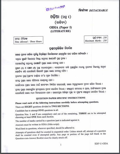 Subject: Oriya Literature Paper - I